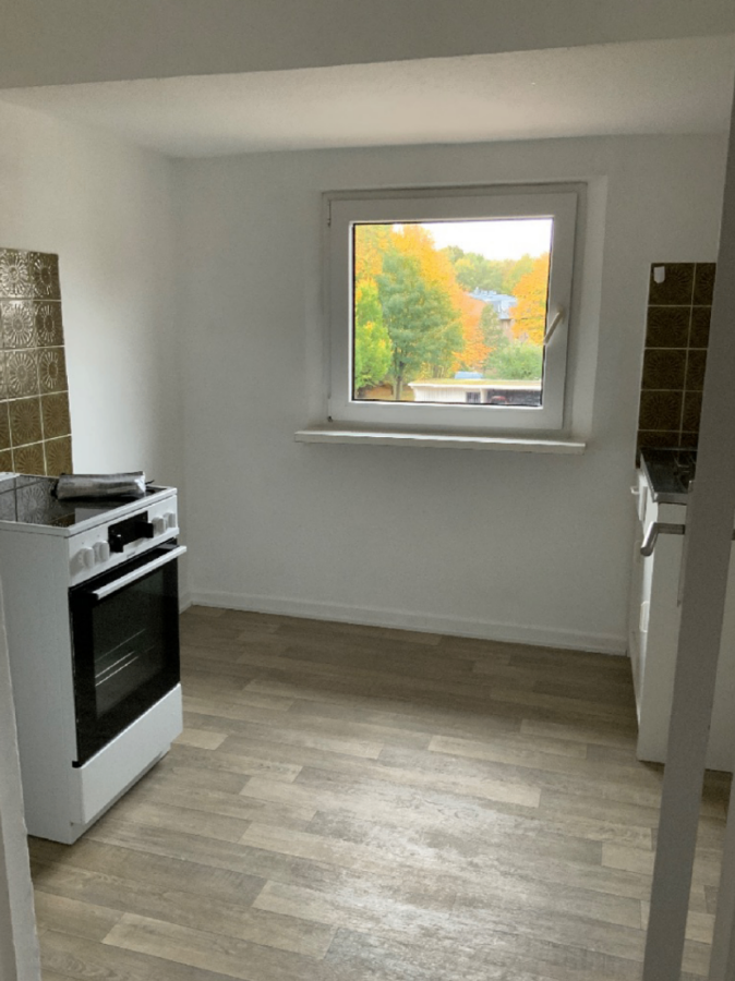 Die Wohnung wird mit einer Grundausstattung in der Küche bereitgestellt. Diese beinhaltet einen Elektroherd mit Ofen und eine Spüle mit Unterschrank.